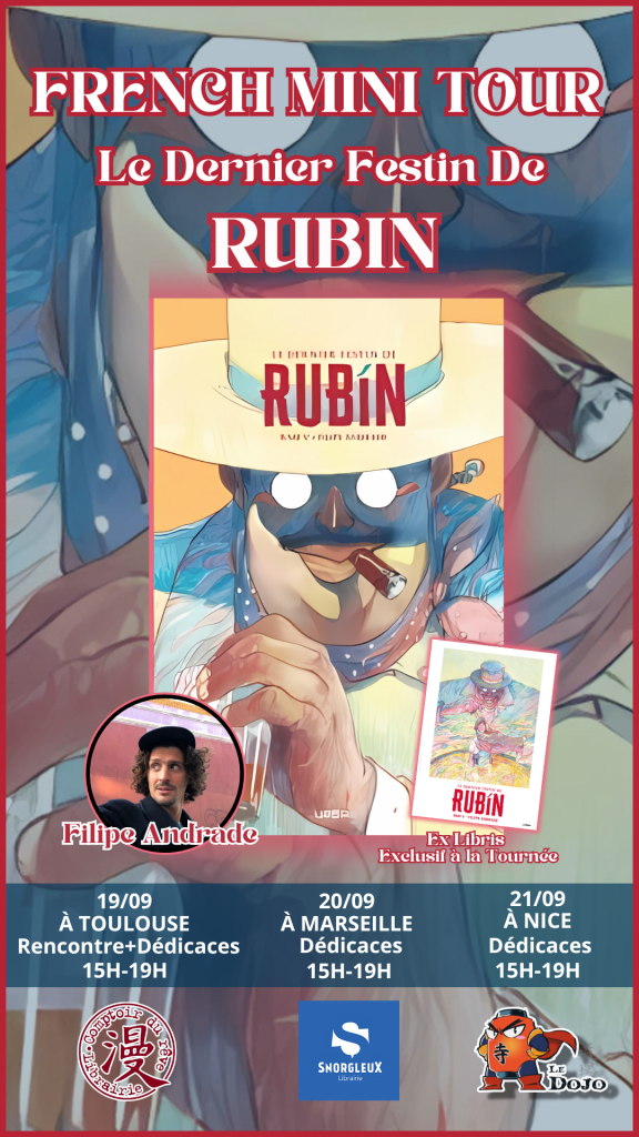 JEUDI 19 SEPTEMBRE la Rencontre d’une heure avec Monsieur Filipe Andrade, qui sera suivie d’une séance de dédicace exceptionnelle autour de son Nouveau Titre LE DERNIER FESTIN DE RUBIN (Rare Flavours) publié chez les ami.e.s d’Urban Comics.